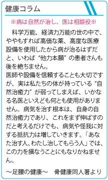 したがって、日頃からのメンテナンス(手入れ)とセルフコンディショニング(調整)をマメにおこなうことで、身体機能の好調維持がはかられ、日々の生活の質(QOL)向上に寄与するものと確信します。